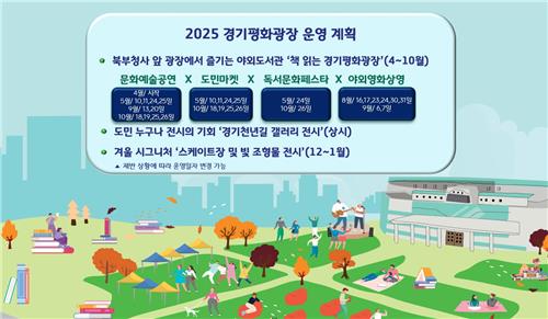 경기도가 밝힌 2025년 경기평화광장 운영계획에 따르면 도는 올해 문화예술공연, 도민마켓, 야외영화상영 등의 프로그램을 '책 읽는 경기평화광장' 사업으로 통합해 일상 속 휴식과 문화가 있는 광장 프로그램을 진행할 계획이다.