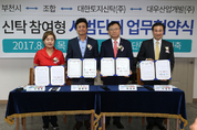 (경기뉴스통신) 부천시는 경기도 최초로 신탁참여형 재건축 시범사업을 추진한다고 25일 밝혔다. 시는 지난 24일 원미동 노후주택인 삼협연립의 성공적인 주택재건축사업을 위한 신탁참여형 재건축 시범사업 업무협약을 체결했다. 이날 협약식에는 김만수 부천시장, 이영희 삼협연립 조합장, 박성표 대한토지신탁 사장, 이상록 대우산업개발 건설본부장과 조합원 50여 명이 참석했다. 삼협연립은 지난 2004년 조합을 설립하고 2005년 사업시행인가를 받았다. 그러나 뉴타운에 편입된 후 다시 해제되는 과정을 겪는 동안 노후화가 심화되어 현재는 재난위험 D급 시설로 주거환경과 안전 측면에서 재건축이 절실한 단지다. 이를 해결하고자 부천시는 지난해 1월부터 삼협연립을 공공지원 시범단지로 선정해 매주 정례회의를 열고 해결방안을 논의하는 등 지원을 해왔다. 그 결과 대한토지신탁이 사업에 참여하기로 결정했으며, 대한토지신탁이 참여하는 조건으로 대우산업개발이 시공사로 참여해 사업을 추진할 수 있게 됐다. 신탁참여형 정비사업 방식은 신탁회사가 사업관리를 맡고 사업비를 조달하는 방식으로 시공사는 사업비 조달에 대한 부담 없이 도급공사만 하면 되기 때문에 책임준공이 가능할 뿐만 아니라 사업리스