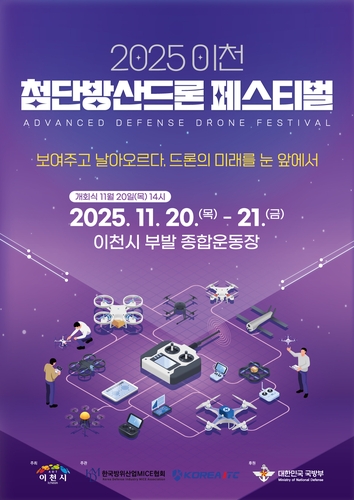 이천시(시장 김경희)는 오는 11월 20일(목)부터 21일(금)까지 이틀간, 부발읍 종합운동장(무촌리 52) 일원에서 '2025 이천 첨단방산드론 페스티벌'을 개최한다. 개막식은 11월 20일 14:00로 드론의 미래를 보는 첫걸음을 내딛을 예정이다.
