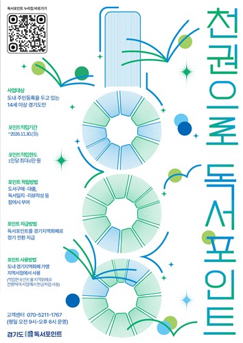 윤명희 경기도서관장은 "책을 읽는 경험이 생활 속 혜택으로 이어지도록 경기도 대표 독서문화 프로젝트인 '천권으로'와 연계해 독서포인트 사업을 설계했다"면서 "경기도민이 책과 함께 걷는 평생 독서의 길을 함께 하길 바란다"고 말했다.