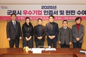 (경기뉴스통신=박민준 기자) 군포시는 17일 시청 3층 중회의실에서 '2025년 군포시 우수기업 인증서 및 현판 수여식'을 열고 5개 우수기업에 인증서와 현판을 수여했다. '우수기업 선정사업'은 2022년부터 시작해 올해 4번째로 추진하는 사업으로 일자리 창출, 세수 증대 등 지역경제 활성화에 기여한 기업을 선정해 인센티브를 부여하는 사업이다. 선정된 우수기업은 인증기간(3년) 동안 군포시 중소기업 육성자금 지원 시 추가 이차보전, 군포시 관내 공영주차장 이용 시 주차요금 감면, 협약병원 의료비 지원 등의 인센티브가 부여된다. 하은호 군포시장은 "어려운 경제 상황 속 관내 우수한 기업에 활력을 불어넣기 위한 우수기업 선정사업에 관심 가져주심에 감사드리며, 앞으로도 기업지원 사업을 다각화해 기업 경영하기 좋은 환경을 만들겠다"고 말했다. 올해 선정된 군포시 우수기업은 ▲(주)아이씨에이치 ▲㈜지비티코리아 ▲주식회사예선테크 ▲듀라텍 주식회사 ▲㈜트리플닷 등으로 총 5개 기업이다.