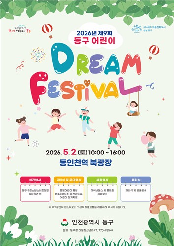 (경기뉴스통신=박민준 기자) 인천 동구는 오는 2일 동인천역 북광장에서 제104회 어린이날을 맞아 '2026년 제9회 동구 어린이 Dream Festival'을 개최한다고 밝혔다.