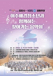 (경기뉴스통신=박민준 기자) 김포시(시장 김병수)가 오는 2월 11일 오후 2시부터 4시까지 김포시와 KBS가 공동주관으로 고촌아트홀 공연장(연주홀)에서 '이주배경 청소년과 함께하는 찾아가는 음악회'를 개최한다고 밝혔다. 이번 음악회는 김포시와 KBS 아나운서실이 지난해 12월 체결한 이주배경 청소년의 사회 적응지원, 상호문화도시 운영 활성화를 위한 업무협약(MOU)의 후속 사업이자 2026년 새해를 여는 첫 협력 행사로 다양한 문화적 배경을 지닌 청소년과 그 가족들, 지역주민이 음악과 강연을 통해 함께 소통하고 공감하는 열린 문화의 장을 마련하고자 기획됐다. 1부 행사에서는 KBS 아나운서실 한국어연구부장인 김희수 아나운서가 '말의 부자 되는 법'이라는 주제로 특강을 진행하고 이어지는 2부 행사에서는 KBS 교향악단과 성악가들이 함께하는 품격 있는 클래식 공연이 펼쳐져 설 명절을 앞두고 따뜻한 감동을 전할 예정이다. 김포시는 이번 음악회를 통해 이주배경 청소년, 가족과 지역주민이 음악이라는 공통의 언어를 통해 서로를 이해하고 친밀하게 교류하는 뜻깊은 시간이 될 것으로 기대하고 있다. 본 공연은 KBS의 사회공헌에 따라 전석 무료로 진행되며, 이주배경 청소년