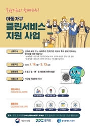 (경기뉴스통신=박민준 기자) 의정부시는 관내 열악한 주거환경에 거주하는 아동의 주거환경 및 위생 개선을 위해 복권기금과 함께 추진하는 '아동가구 클린서비스 지원사업'의 대상 가구를 3월 13일까지 모집한다. 이번 사업에 선정된 가구는 주거환경 개선을 위해 소독·방역(필수), 도배·장판, 청소(수납) 가운데 2가지를 선택해 클린서비스를 지원받을 수 있으며, 냉난방기, 공기청정기, 세탁기, 건조기 중에서도 2가지 물품을 함께 지원받을 수 있다. 지원 대상은 만 18세 미만 아동이 포함된 가구 중 최저 주거기준 미달 가구(4인 가구 기준 43㎡ 미만) 또는 반지하·옥탑 거주 가구, 기초생활수급자·차상위계층 등 저소득 가구로 의정부시는 예비 대상자 포함 9가구를 모집한다.