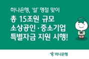 (경기뉴스통신=박민준 기자) 하나은행(은행장 이호성)은 '설'을 맞이해 명절 전후 자금 수요가 많은 소상공인·중소기업에게 오는 3월 13일까지 총 15조원 규모의 특별자금 지원을 실시한다고 밝혔다. 지원대상은 일반대출(운전/시설), 상업어음할인, 무역어음대출 등 1년 이내의 기업대출 신규 및 기 취급 명절(설,추석) 특별자금 대출의 연장(대환)건으로, 최대 1.5% 범위 내 대출금리 감면을 지원한다. 이번 지원 한도는 신규 6조원, 연장 9조원을 더한 총 15조원 규모로, 신규 및 기존대출의 이자를 대폭 절감해 명절 전후 자금 수요가 필요한 중소기업(개인사업자포함)에게 큰 도움이 될 것으로 기대된다. 또한, 하나은행은 설을 맞이해 신권교환 수요가 있는 귀성객들을 위해 '직접 찾아가는 금융서비스'를 제공한다. 2월 13일(금)과 14일(토) 양일간 오전 10시부터 오후 5시까지 양재 만남의광장 휴게소(하행선)에서 '움직이는 하나은행'을 통해 신권교환 행사를 실시한다. 하나은행 관계자는 "설 명절을 맞이해, 자금이 꼭 필요한 소상공인·중소기업들에게 조금이나마 도움이 되길 기대한다"며 "가족과 함께 따뜻하고 풍성한 명절 보내시길 바란다"고 말했다. 한편, 하나은행